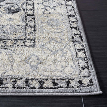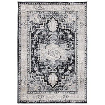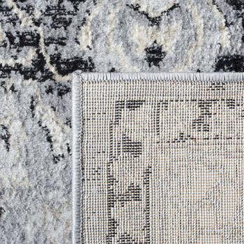 Introducing our exquisitely designed 2' x 8' Transitional Runner Rug, a perfect melding of tradition and contemporary style to enhance your hallway or living space. With its elegantly weathered black and grey pattern, this runner adds a touch of class and versatility to any room.