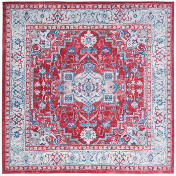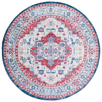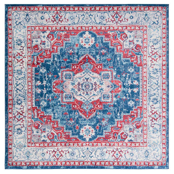 Drawing the eye with its rich NAVY and RED color palette, the rug features a symmetrical pattern radiating from the central medallion. Framed by a simple yet striking border, the intricate floral designs and classic motifs exude a sense of tradition with a modern twist.
