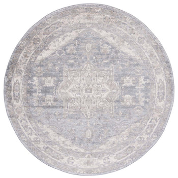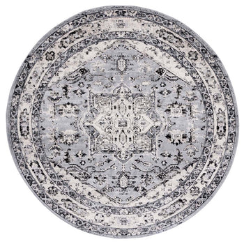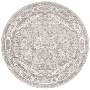 Elevate your living space with our exquisite transitional-style area rug, meticulously crafted in Turkey using the latest power-loomed technology for unparalleled durability and precision. This charming round rug measures 3' X 3', providing a compact yet impactful accent to your room. Its gentle cream and grey hues, coupled with a versatile transitional pattern, make it an ideal backdrop for both classic and contemporary interiors.