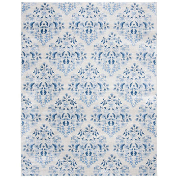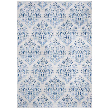 The cream and blue color palette is tastefully employed in a harmonious pattern that invites the charm of old-world design into the modern home. The 3/8" pile height offers a comfortable surface that's neither too plush nor too flat, making for a balanced and approachable feel.
