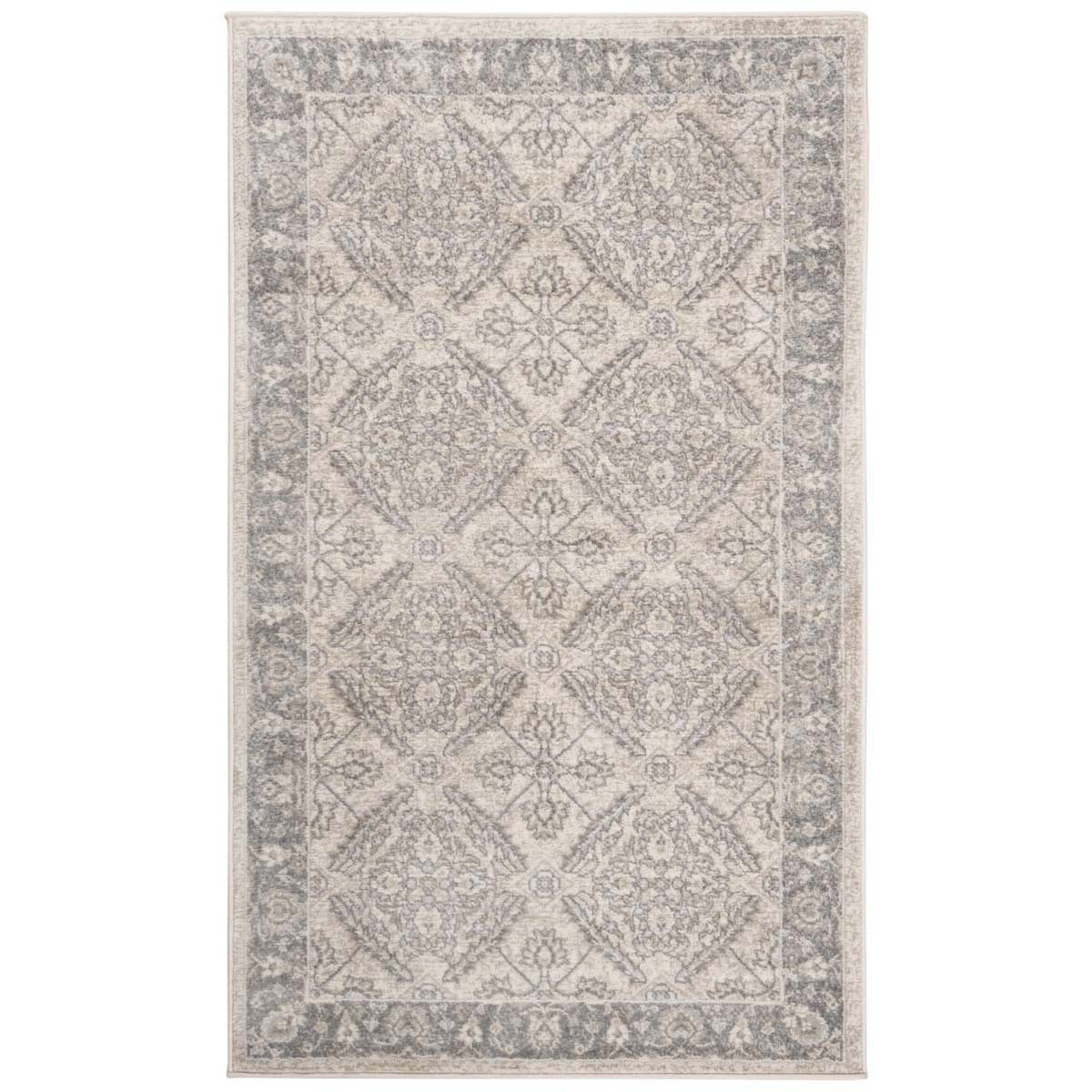 Introducing the epitome of traditional elegance and functional style ? our exquisite accent rug sized at a versatile 2' x 4', perfect for gracing any small space with its sophisticated presence. With a sumptuous cream and grey color palette, this rug becomes an effortless centerpiece that complements a variety of interiors while maintaining a timeless appeal.