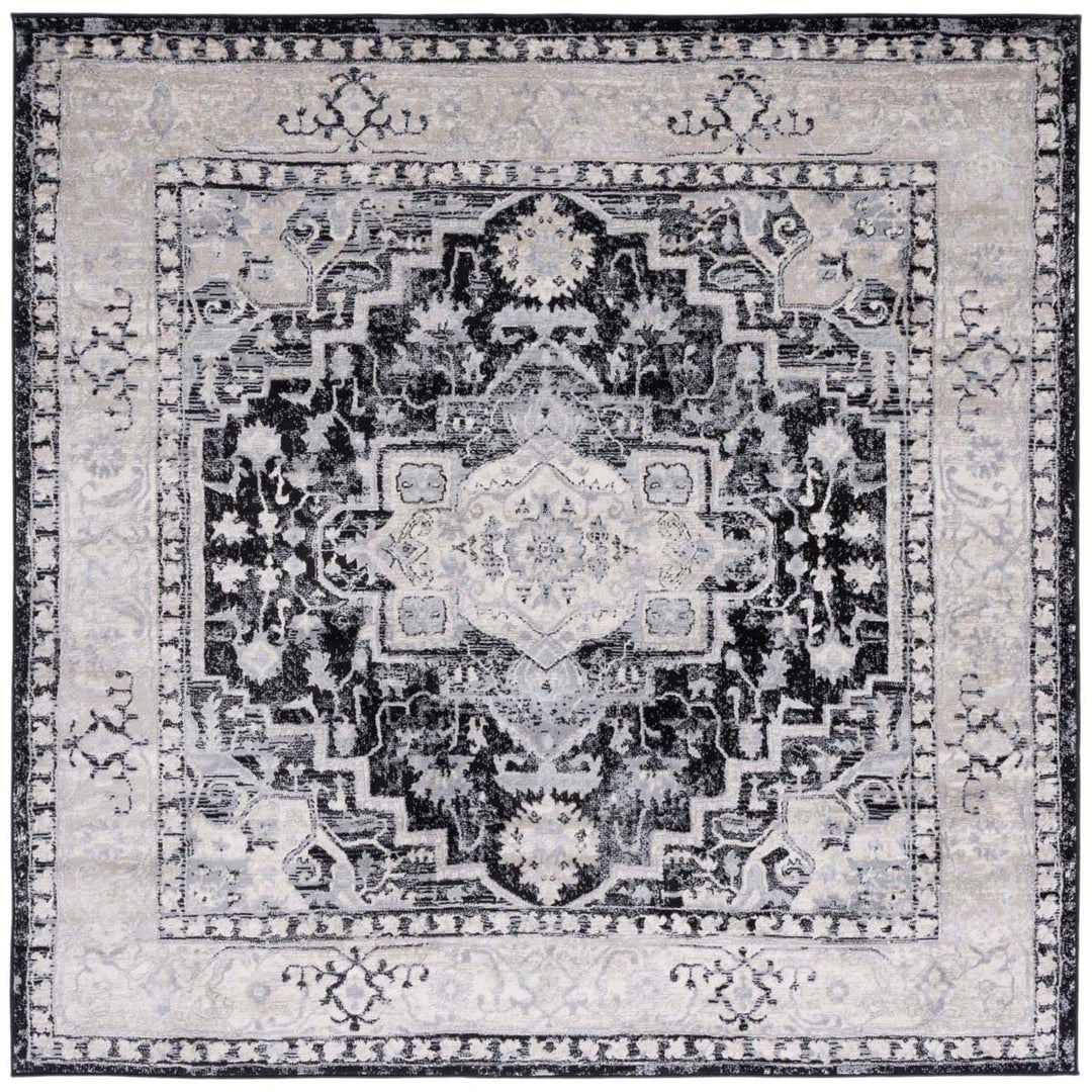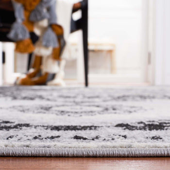 Crafted in Turkey, a region renowned for its rich heritage in rug-making, this runner features a transitional style that harmoniously bridges classic and contemporary design. The refined grey and black palette creates a sophisticated base, while its pattern showcases a series of ornate medallions and intricate borders, delivering an elegant visual appeal that complements a wide range of interiors.