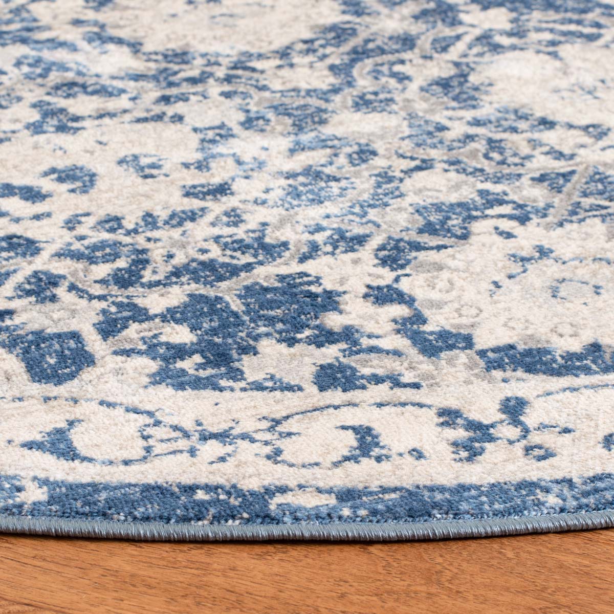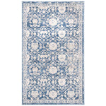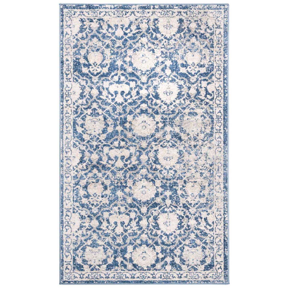 Adorn your living space with the timeless charm of this area rug. The intricate pattern, visible in the image provided, features a harmonious symphony of navy and creme that is sure to captivate and add a touch of luxury to any setting. Whether placed in a cozy corner for a splash of color or in a high-traffic area to welcome guests, its charm and finesse remain unmatched.