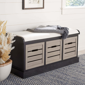 Storage meets style in this Briar Cushion Bench. Perfect for a busy entryway or farmhouse chic bedroom, Briar's country charm is highlighted in its distressed grey frame, while its sand toned basket drawers easily hide away life's messes or store everyday essentials.