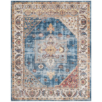 Introducing our stunning 7' X 7' Round area rug, a perfect blend of modern construction and vintage elegance. Crafted in the vibrant hues of BLUE and IVORY, this rug is a captivating centerpiece for any room. The intricate design, featuring a traditional medallion pattern with surrounding floral motifs, brings a classic look that is sure to enrich your home decor.