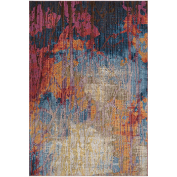 Transform your living space with the artistic allure of our 7' X 7' Square area rug, a tapestry of vivid hues and contemporary design that promises to become the centerpiece of any room. The fusion of deep blues and warm rust tones creates a captivating visual experience, with a pattern that speaks of abstract elegance and modern sophistication.