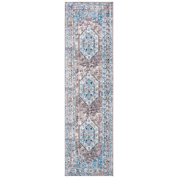 The classic charm of this runner is embodied in its traditional style, which emanates from its intricate pattern that showcases ornate medallions accented with delicate filigree and framed by a decorative border. The harmonious blend of grey and blue hues provides a serene yet striking look that complements a variety of decors, making it a versatile choice for your entryway, hallway, or living space.