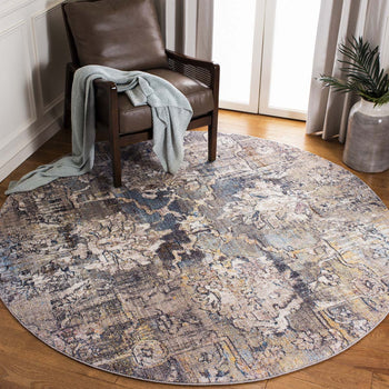 Introducing our exquisite 7' X 7' Round area rug, a perfect piece to enrich the aesthetic appeal of any room in your home. This meticulously crafted rug emanates timeless elegance through its intricate patterns and a harmonious blend of calming blue and neutral grey tones.