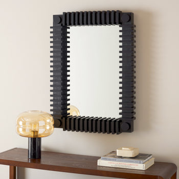 Introducing the Brom Mirror, a striking centerpiece that embodies industrial elegance. Its rectangular shape, bold black finish, and jagged edges create a distinctive look that feels both edgy and refined.