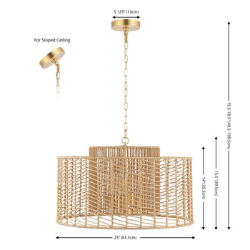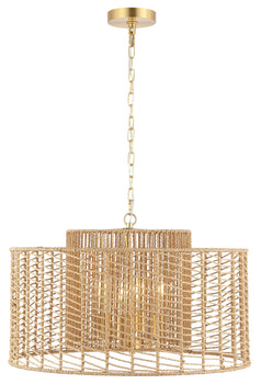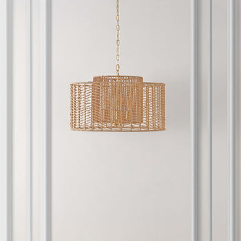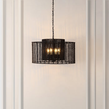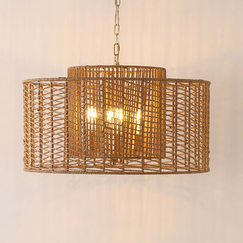 Brighten up your home with the relaxed elegance and charm of our Brynora extendable pendant. Updating a drum shade with artful layering and woven patterns, our pendant is sure to make a dramatic statement. Its rich woven texture and airy design elevates any corner with breezy elegance. Delivering a striking play of light and shadow, our pendant light serves as a charming centerpiece for your entryway, bedroom, dining, or living area. It features four lights to light up any space with a warm and ambient glow.