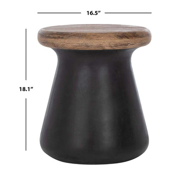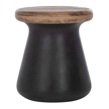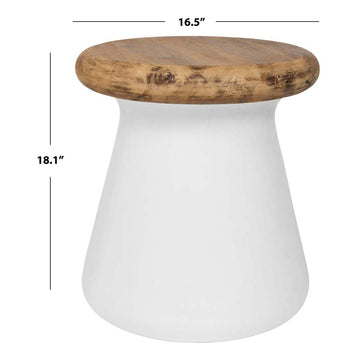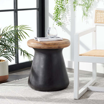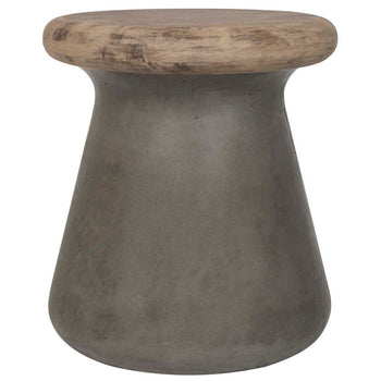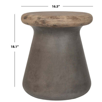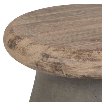 Designed to evoke a modern flair, the contemporary concrete Button accent table combines form and function. Crafted of an acacia wood top and a rich base, this piece lends chic character to any space. Perfect for indoor and outdoor use.
