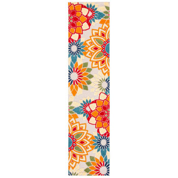 Designed with an eye for style and a commitment to quality, this rug showcases a stunning ivory base punctuated by bursts of zesty orange, complemented by tones of teal and green. The intricate floral and geometric patterns lend a sense of movement and cheer, creating a focal point that's both striking and inviting.