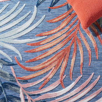 The elaborate pattern, displayed in the provided image, showcases a graceful foliage design that breathes life and movement into any area it adorns. The vibrant rust tones, set against a serene blue backdrop, offer a palette that complements both indoor and outdoor environments with an effortless style that?s equally at home in a casual setting or a more formal atmosphere.