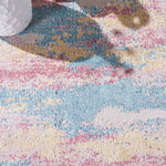 The design captures an abstract expression of watercolor strokes, creating a unique pattern that makes each rug a one-of-a-kind piece. The height of 3/8" provides a comfortable underfoot while maintaining a sleek profile for easy placement under furniture and doors.