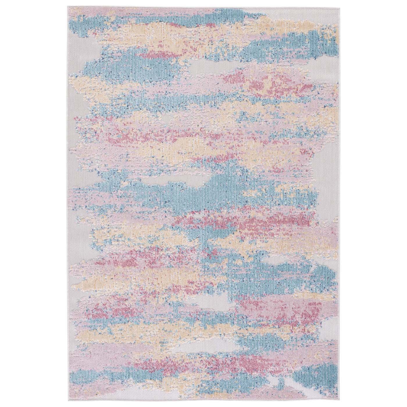 Elevate your living space with the fusion of modern design and comforting texture in our 4' X 6' Small Rectangle Indoor/Outdoor Area Rug. Artfully crafted in Turkey, this rug boasts a playful yet sophisticated blend of aqua and pink hues that are sure to add a pop of color and warmth to any room or outdoor setting.