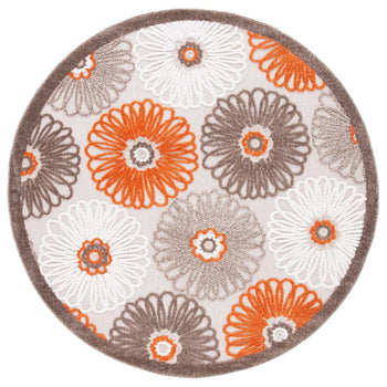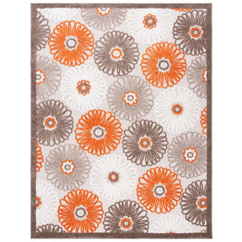 Adorned with a cheerful country and floral style, the design showcases a beautiful array of large-scale flowers that evoke the serenity of a garden in bloom. The high-resolution image illustrates the detailed pattern work in the rug, with an interplay of grey, beige, and vibrant orange hues that lend a pop of color without overwhelming your space.