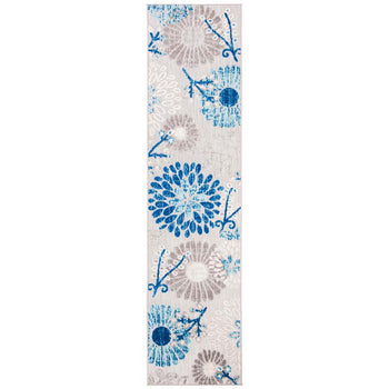 Whether placed inside your home or out on the deck, this Grey/Blue Floral Style Area Rug will bring a touch of sophistication and timeless elegance to any setting.