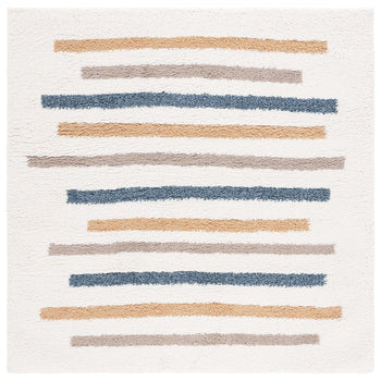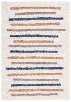 The contemporary design features a pattern of clean, horizontal stripes that blend harmoniously with a variety of decors, from modern to traditional. Each line is interwoven into the soft ivory base with precision, lending a quiet opulence and high-end aesthetic to your home.