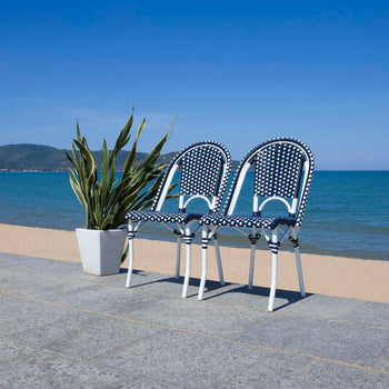 Elevate Your Alfresco Fun With The Inviting Style And Warmth Of Our California Side Chair. It Updates The Time-Honored French Bistro Chair With A Natural Color Palette. Its Hugging Silhouette And Woven Contours Embrace The Body Comfortably. Featuring Faux Wicker Elegantly Wrapped Around An Aluminum Frame, Our Armchair Captures Textural Beauty That Can Withstand The Effect Of Sun, Rain, And Heat. Available In A Set Of Two, Our All-Rounder Chair Can Serve You In Each Season.