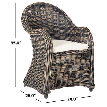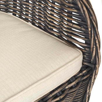 Recalling classic wicker designs of centuries past, this natural kubu rattan club chair is distinguished with a casual black wash finish. With a graceful curved silhouette and rolled edge finish, this eco friendly woven rattan chair exudes casual charm.