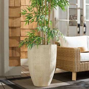 Transform your outdoor space with the Cana Large Pedestal Planter Pot. This beautifully crafted piece, in a warm hue, adds an inviting touch to any garden or patio. Made from a unique blend of cement and bamboo, this planter pot not only showcases elegance but also embodies an eco-friendly choice. Its substantial size makes it perfect for showcasing your lush ferns, vibrant flowers, or statement trees, elevating your greenery with style.