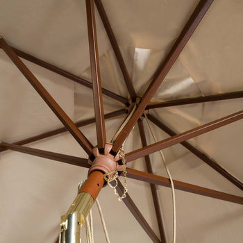 Provide shade and protection in style with our Cannes market umbrella. The elegantly simple design of our umbrella adorns a natural color to harmonize with any outdoor setting. It features an easy-to-use pulley system to allow for smooth open and close operation. A perfect blend of style and practicality, our tall and graceful umbrella is crafted with wood with a PE coating for long-lasting durability. Perfect for both residential and commercial uses, our market umbrella vouches for a comfortable stay outdoors.