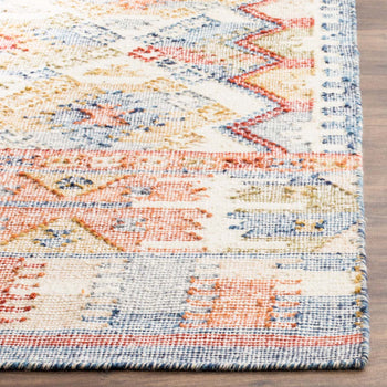 Introduce a touch of artisanal charm to your living space with our stunning 4' X 6' area rug, showcasing a beautiful blend of RED/BLUE/MULTI colors that create a vibrant tapestry for your floor. This small rectangular masterpiece is handwoven with meticulous care using the timeless Flat Weave technique, ensuring a product that is not just a rug, but a piece of art.