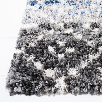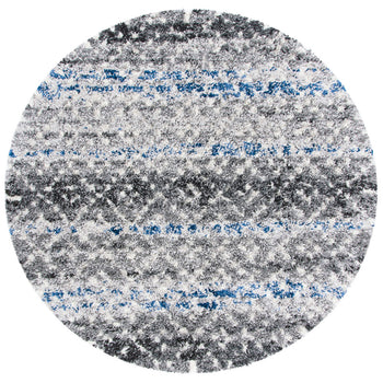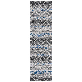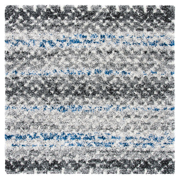The rug pattern is striking, featuring a modern blend of grey tones with bold linear highlights in a refreshing shade of blue that will complement a variety of decors. Whether you're looking to add a fashionable statement piece or complete the look of your room, this rug is sure to captivate and impress.