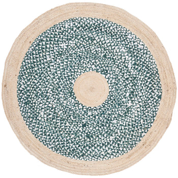 Bring a touch of elegance and warmth to your space with our exquisite 3' X 3' Round area rug. This unique piece is meticulously handwoven by skilled artisans in India, ensuring that each rug is a one-of-a-kind creation. The harmonious combination of light blue and natural tones embodies a serene aesthetic that can enhance any room.