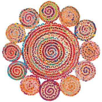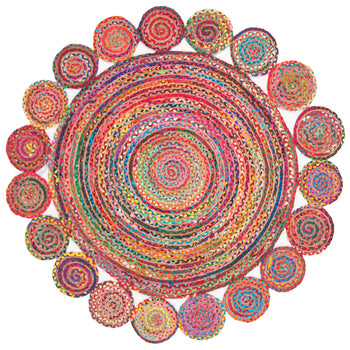 Invite a touch of elegance and warmth into your space with our exquisite 3' X 3' Round area rug. Artfully handwoven by skilled artisans in the vibrant heart of India, this unique piece showcases a perfect blend of tradition and craftsmanship.
