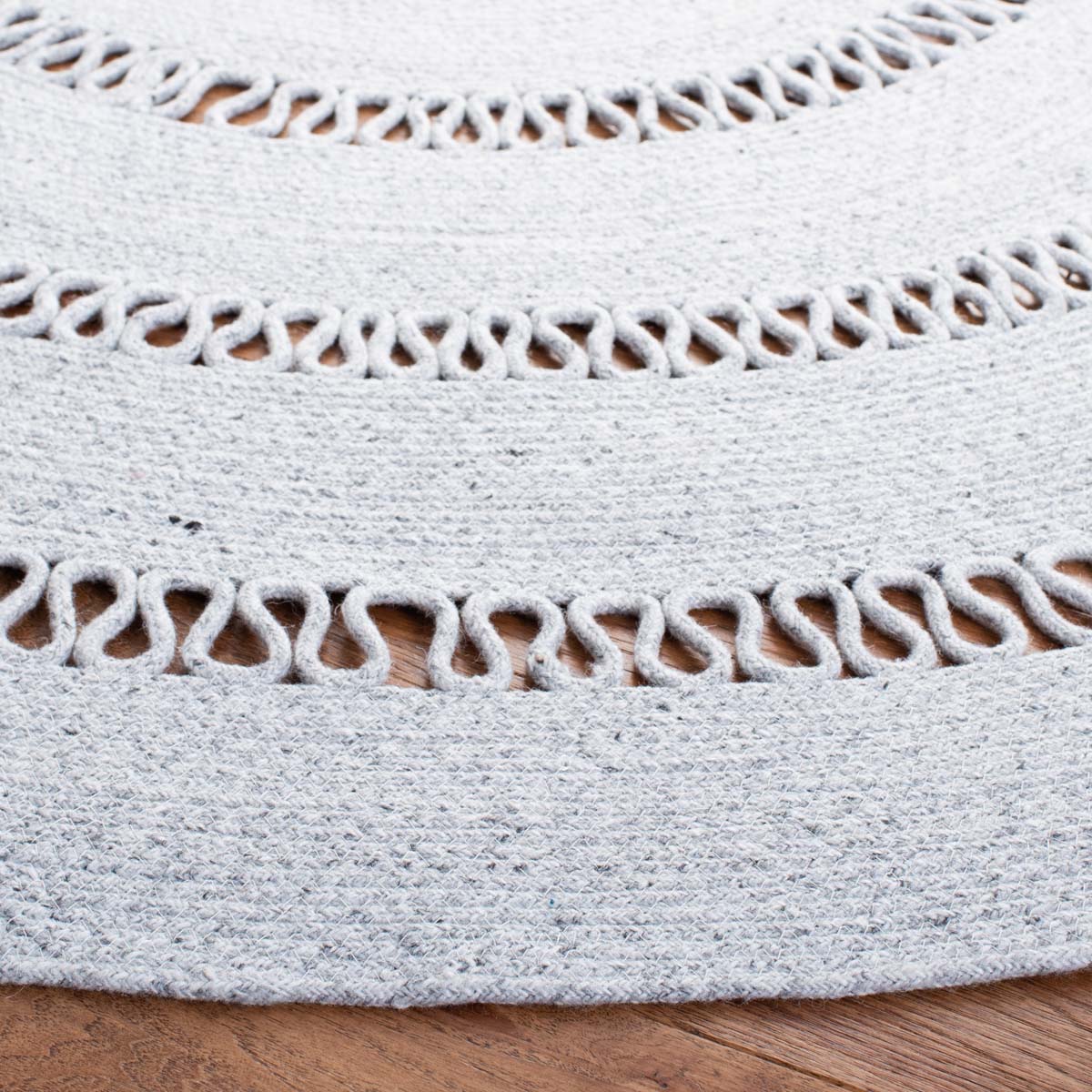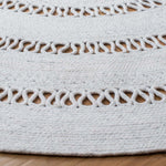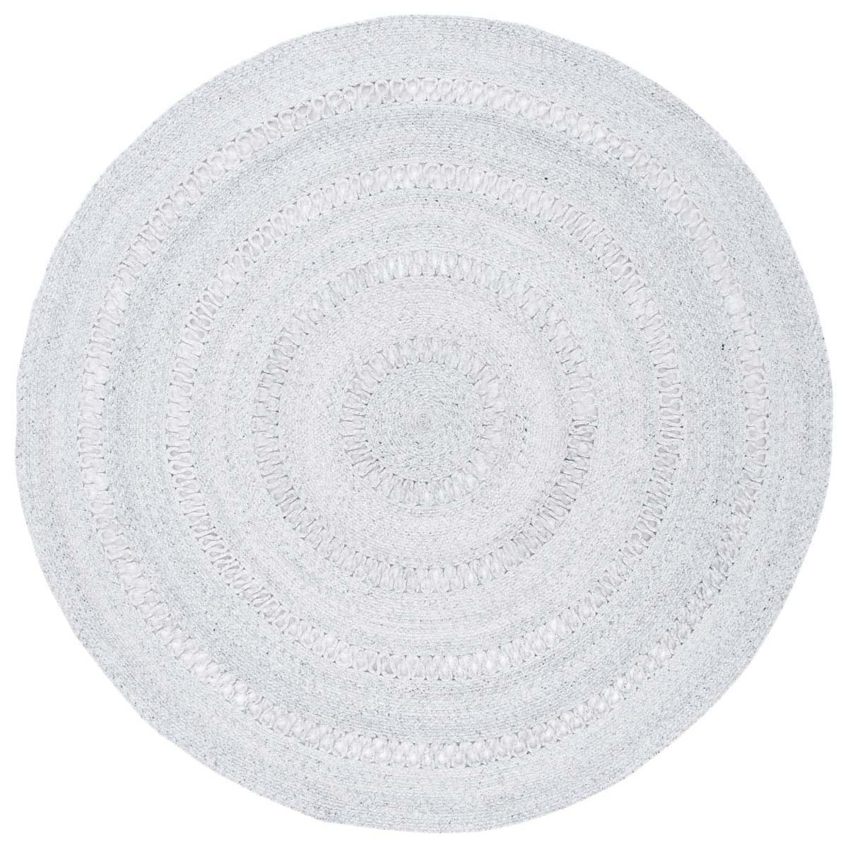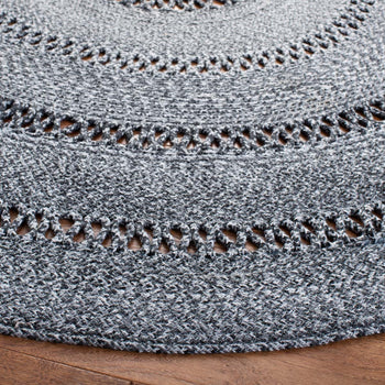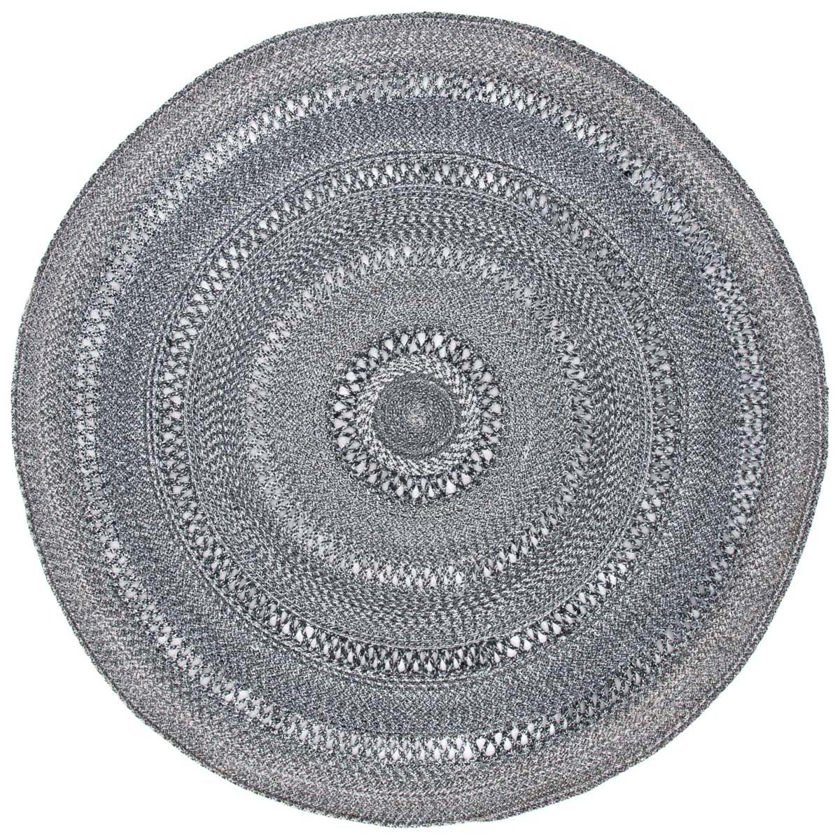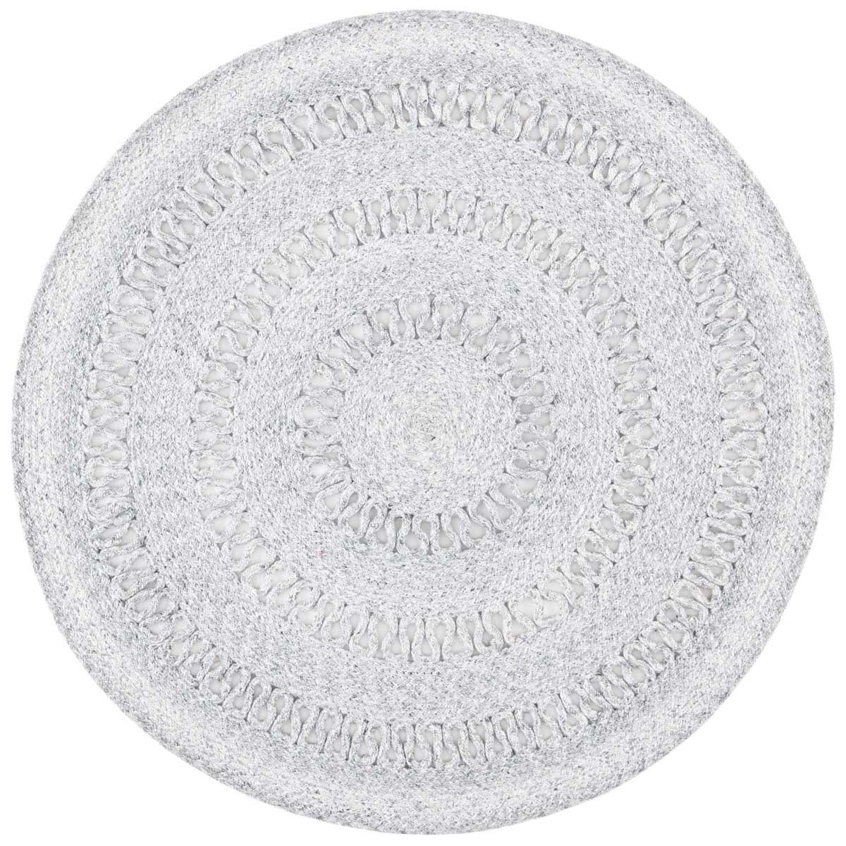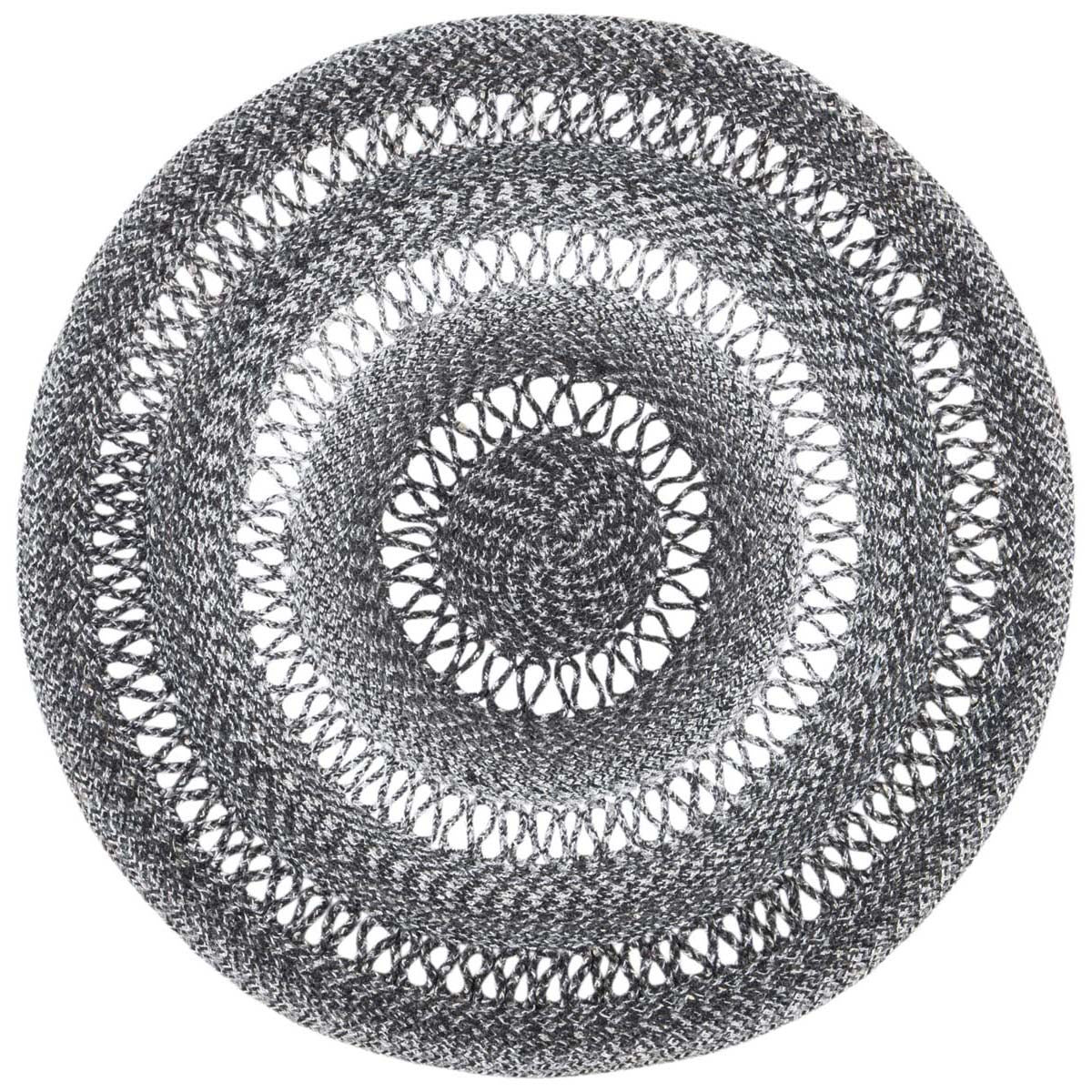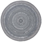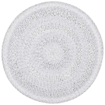 Featuring a harmonious grey palette, this round rug is designed to set a tranquil mood in your living space. The texture is accentuated by hand-woven patterns, showcasing multiple concentric circles that create a sense of depth and sophistication.