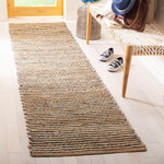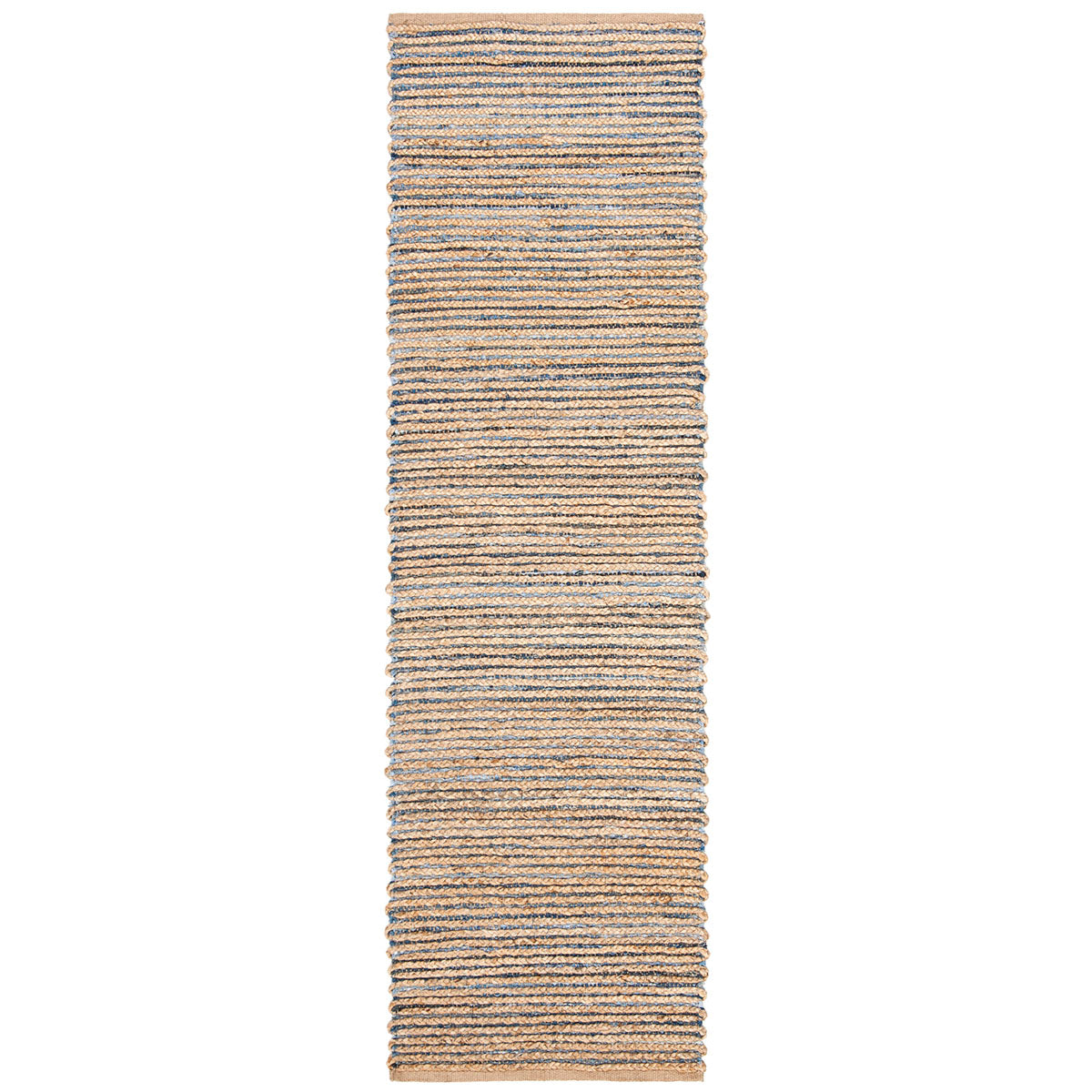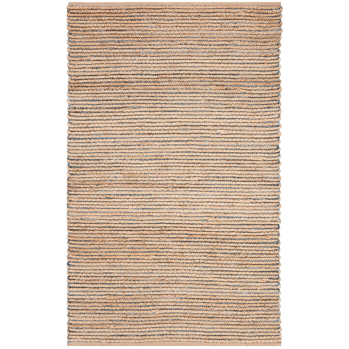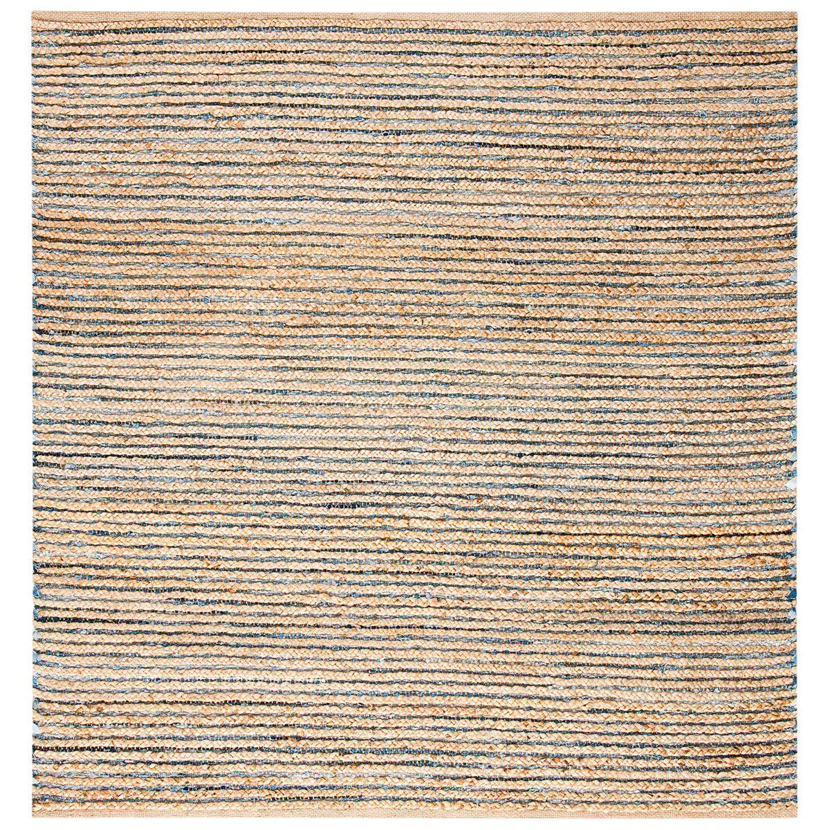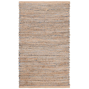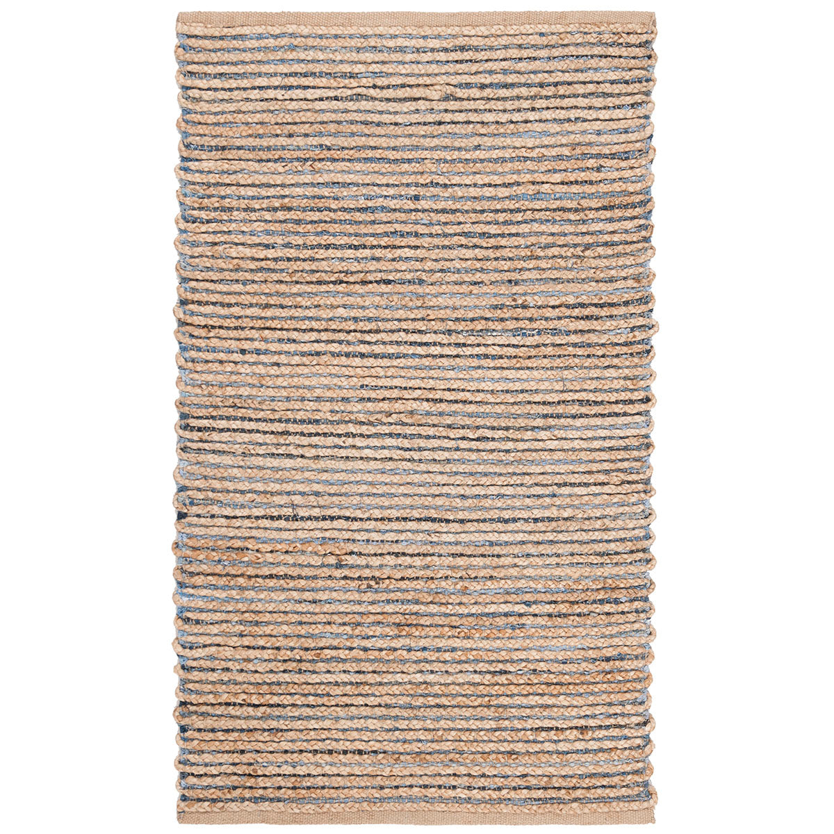 The hand-woven technique used in its creation lends an artisanal touch, making each rug a one-of-a-kind piece that enhances the character of your home decor. The alternating natural and blue stripes showcase a simple yet sophisticated pattern that effortlessly blends with various interior themes, from coastal to contemporary.