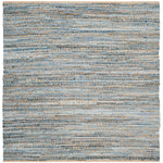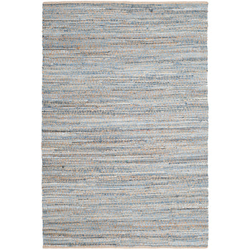 The construction of the rug employs a hand-woven technique, a testament to the skill and dedication of our artisans from India. Made from a durable and environmentally friendly composition of 60% Cotton Denim and 40% Jute, this rug is not only soft to the touch but also resilient and sustainable.