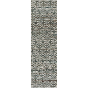 This rug features a stunning pattern that exudes a timeless style. The intricate design features a series of harmonious teardrop shapes, creating a sense of rhythm and flow across the rug's surface. Each teardrop is outlined with a graceful grey that stands out against the light beige background, adding depth and dimension to the overall design.