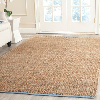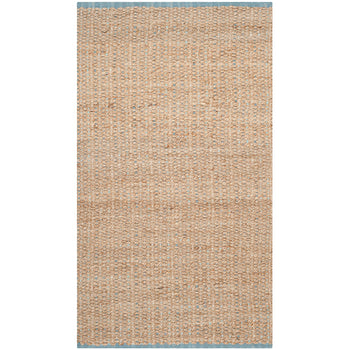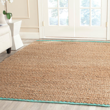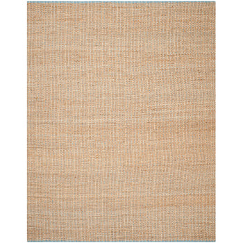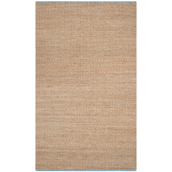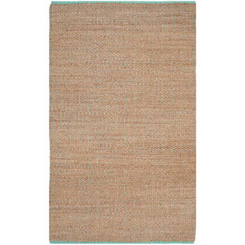This rug features a subtle and inviting pattern, showcasing the natural beauty of jute with hints of aqua to brighten and complement your decor. The small rectangular shape is versatile, fitting into various settings, from a cozy reading nook to an elegant entryway. At a comfortable height of 3/8", this rug provides a soft underfoot without compromising on the low-profile design ideal for high-traffic areas.