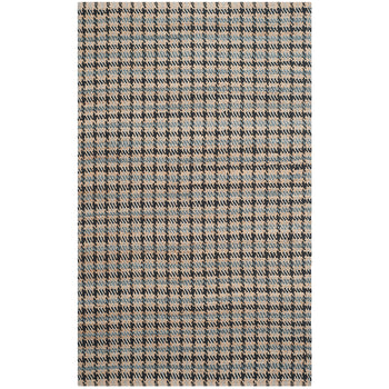 The rug's pattern, visible in the image provided, features a harmonious interplay of grey and natural tones, arranged in a dynamic and engaging houndstooth-like design. This timeless pattern injects a sense of movement and depth into the weave, ensuring that the rug will be a conversation starter and a valued addition to your home for years to come.