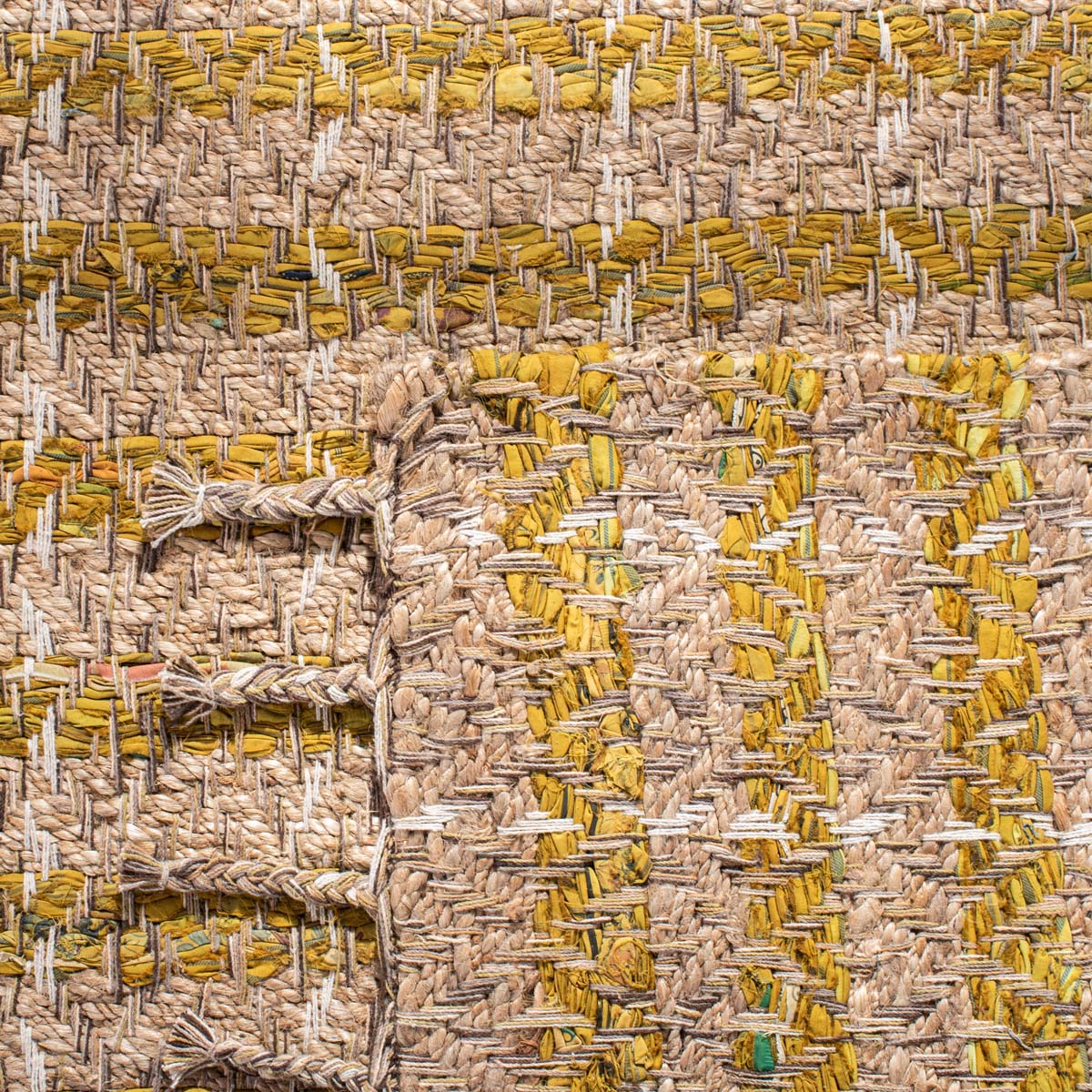 Elevate your living space with the exquisite craftsmanship and natural charm of our 3' X 5' Gold/Natural Hand-Woven Area Rug. Constructed with a blend of 70% jute and 30% cotton, this small rectangle rug brings an organic texture and contemporary style to any room.