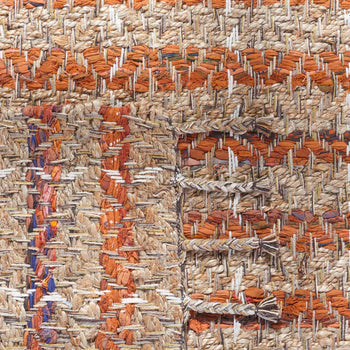 The hand-woven technique employed in creating this piece ensures a unique, high-quality finish, with each strand meticulously intertwined to create a durable and robust surface. The natural hues of gold and beige are accentuated by subtle hints of multicolor fibers, as seen in the image, lending a warm and inviting ambiance.