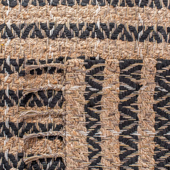 Elevate your living space with the exquisite craftsmanship and natural charm of our 3' X 5' Gold/Natural Hand-Woven Area Rug. Constructed with a blend of 70% jute and 30% cotton, this small rectangle rug brings an organic texture and contemporary style to any room.