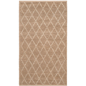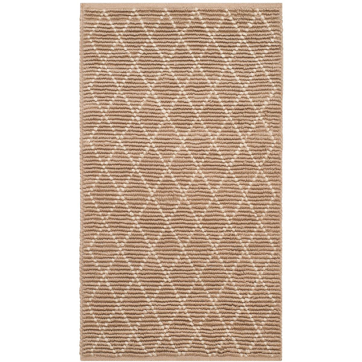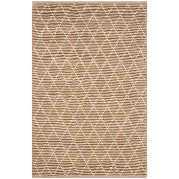 The rug's design features a harmonious interplay of natural and ivory tones, arranged in a classic diamond pattern that adds a timeless elegance to any room. The subtle contrast and tactile feel make it a versatile choice that complements a variety of decor styles, from rustic to contemporary.