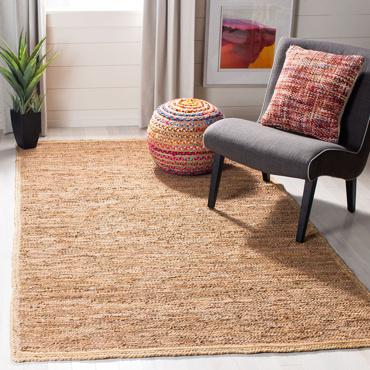 Whether placed in a living room, bedroom, or entryway, this area rug will become a cherished centerpiece that embodies both comfort and chic design. Don't miss the opportunity to bring a touch of artisanal charm into your home with this exquisite blend of materials and craftsmanship.