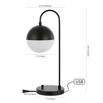 Inspired by edgy mid century modern style, this contemporary table lamp steals the show in any living room. Designed with a luxurious modern finish, it diffuses light from a partially white retro globe shade to create a warm glow. This table lamp comes with a built-in USB port to keep your devices charged at all times.