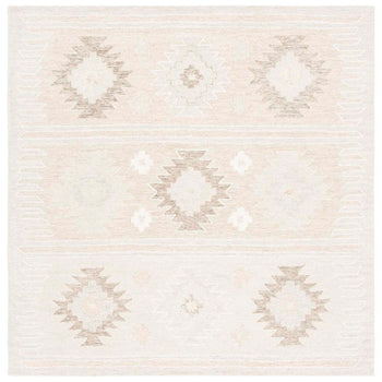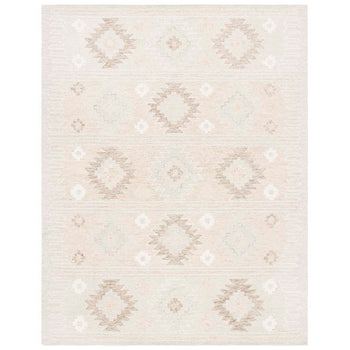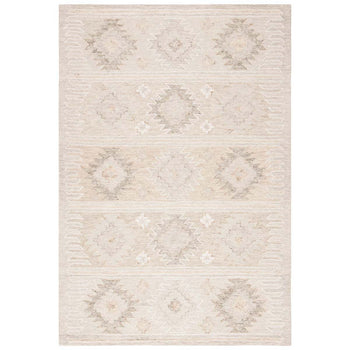 Hailing from the skilled artisans of India, this rug features a serene beige palette, providing a versatile backdrop for a variety of decor styles. The harmonious combination of traditional and contemporary design elements is evident in the subtle, geometric diamond pattern that embellishes the rug. Each motif is outlined with delicate precision, contributing to the rug's overall textured appeal.