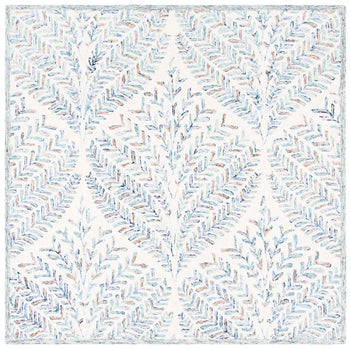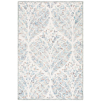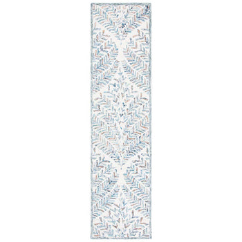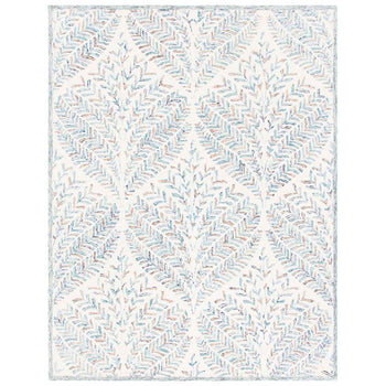 The piece is not only a testament to traditional techniques but also a work of art, thanks to its striking floral pattern that beautifully melds soothing ivory with serene shades of blue. This small rectangle rug is constructed from the finest wool, ensuring both durability and comfort, making it an ideal choice for those seeking both high-quality materials and delicate aesthetics.