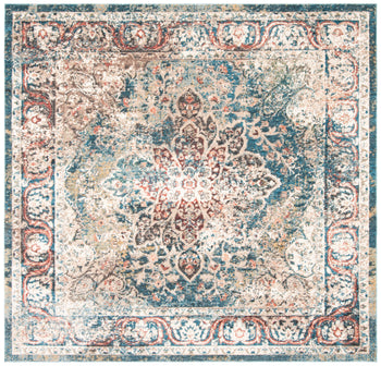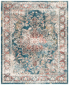 The rug's stunning power-loomed construction ensures remarkable precision and consistency in its intricate pattern, showcasing a beautiful central medallion surrounded by a harmonious mix of floral and geometric motifs. The sophisticated color palette, featuring serene shades of turquoise and ivory, brings a sense of calm and relaxation to your decor while maintaining a vibrant and fresh look.