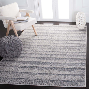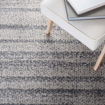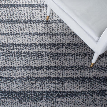 Adorned with a harmonious blend of grey and navy, this rug features a subtle, striated pattern that adds depth and texture to any room. Whether it's grounded in a minimalist setting or a complement to more eclectic decor, its versatile design is sure to captivate and impress.