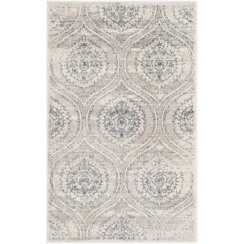 Elevate your living space with the timeless elegance of our Light Grey/Cream Area Rug. Expertly crafted in Turkey using a state-of-the-art power loomed technique, this small rectangle rug measuring 3 feet by 5 feet offers both durability and sophisticated design.
