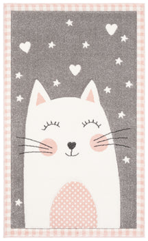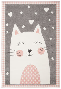Crafted in the heart of Turkey using state of the art Power Loomed technology, this rug promises durability and ease of maintenance thanks to its resilient polypropylene pile construction. The delightful pattern, featuring an adorable cat face surrounded by hearts and stars, adds a touch of innocence and magic to your child's personal sanctuary.