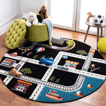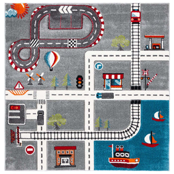 Discover the perfect addition to any child's room with our vibrant 2' X 3' Accent area rug crafted in a delightful Kids style. Power-loomed for precision and durability, this charming piece sports a playful road and city scene pattern that sparks imagination and encourages creative play.