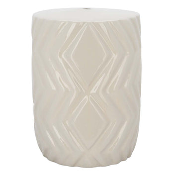 Refresh your Decor with the mesmerizing depth of this captivating Carsyn Garden Stool. Carsyn boasts a textured diamond and chevron pattern that ripples over its soft ivory ceramic, perfect for adding visual intrigue and balance to clean lined furnishings.